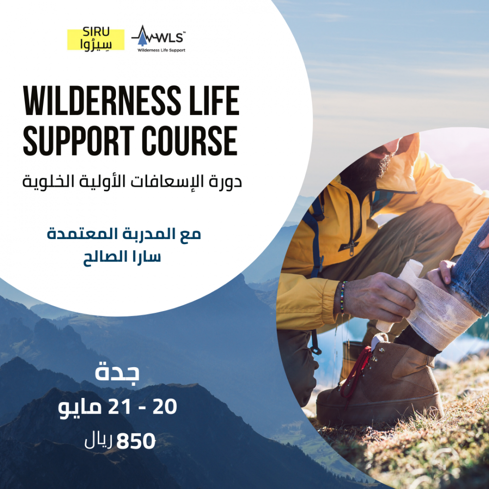سيكون محور الدورة عن الاسعافات الاولية في المناطق الخلوية و كيفية استخدام الموارد المحيطة بك لاسعاف الشخص المصاب. تعد هذه الشهادة من المتطلبات الأساسية لتنظيم والمشاركة في رحلات الهاكينج او المشي الجبلي. ستكون الدورة بإدارة سارا الصالح, مدربة معتمدة من منظمة ادفنتشر ميد الامريكية والاتحاد السعودي للتسلق والهايكنج.