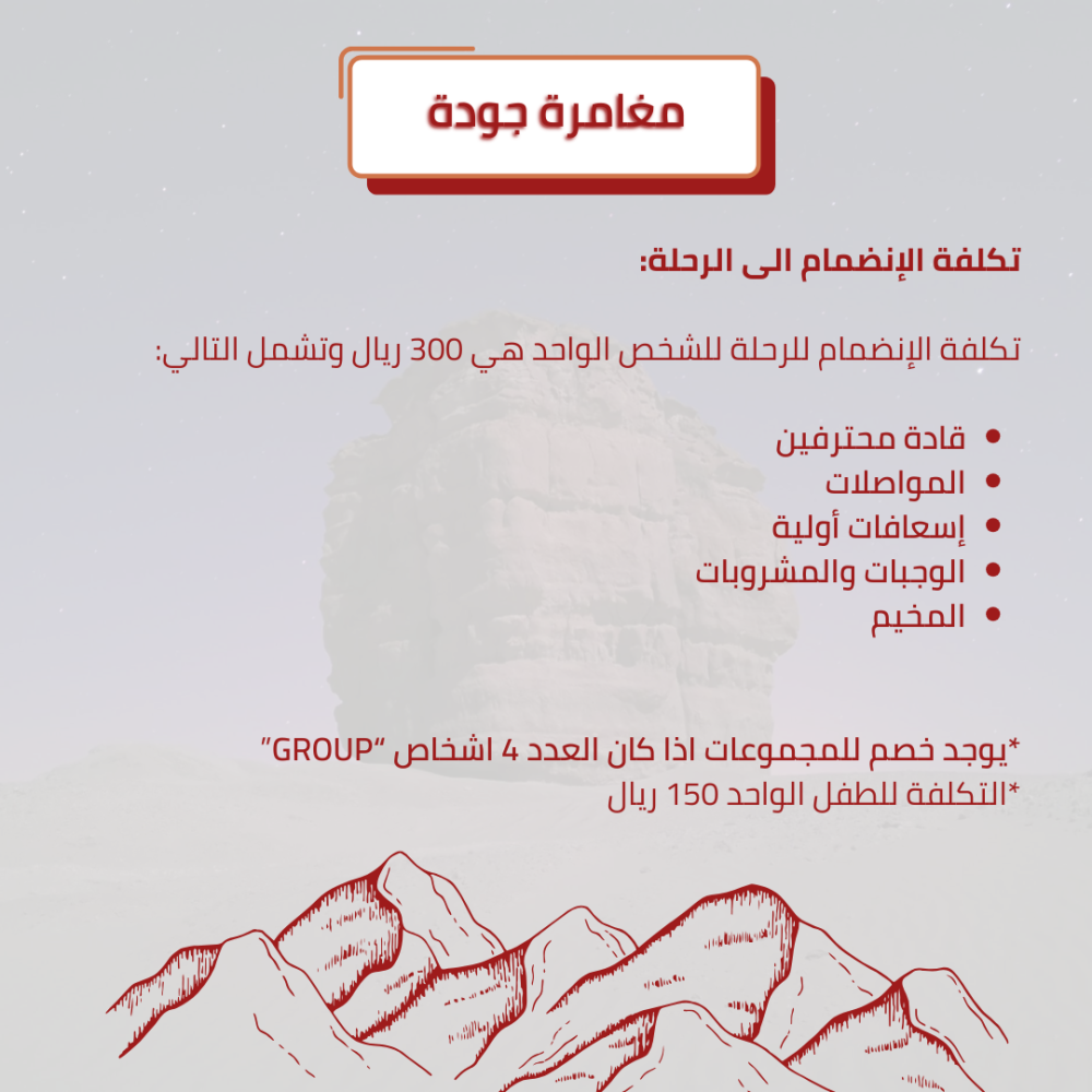 للرحلة للشخص الواحد هي 300 ريال وتشمل الاتي: